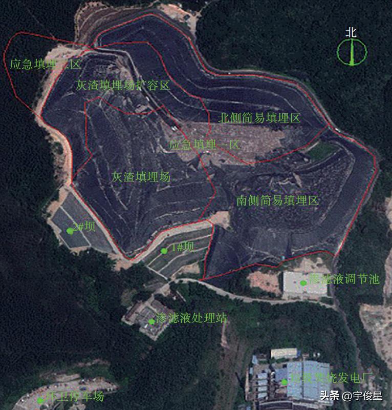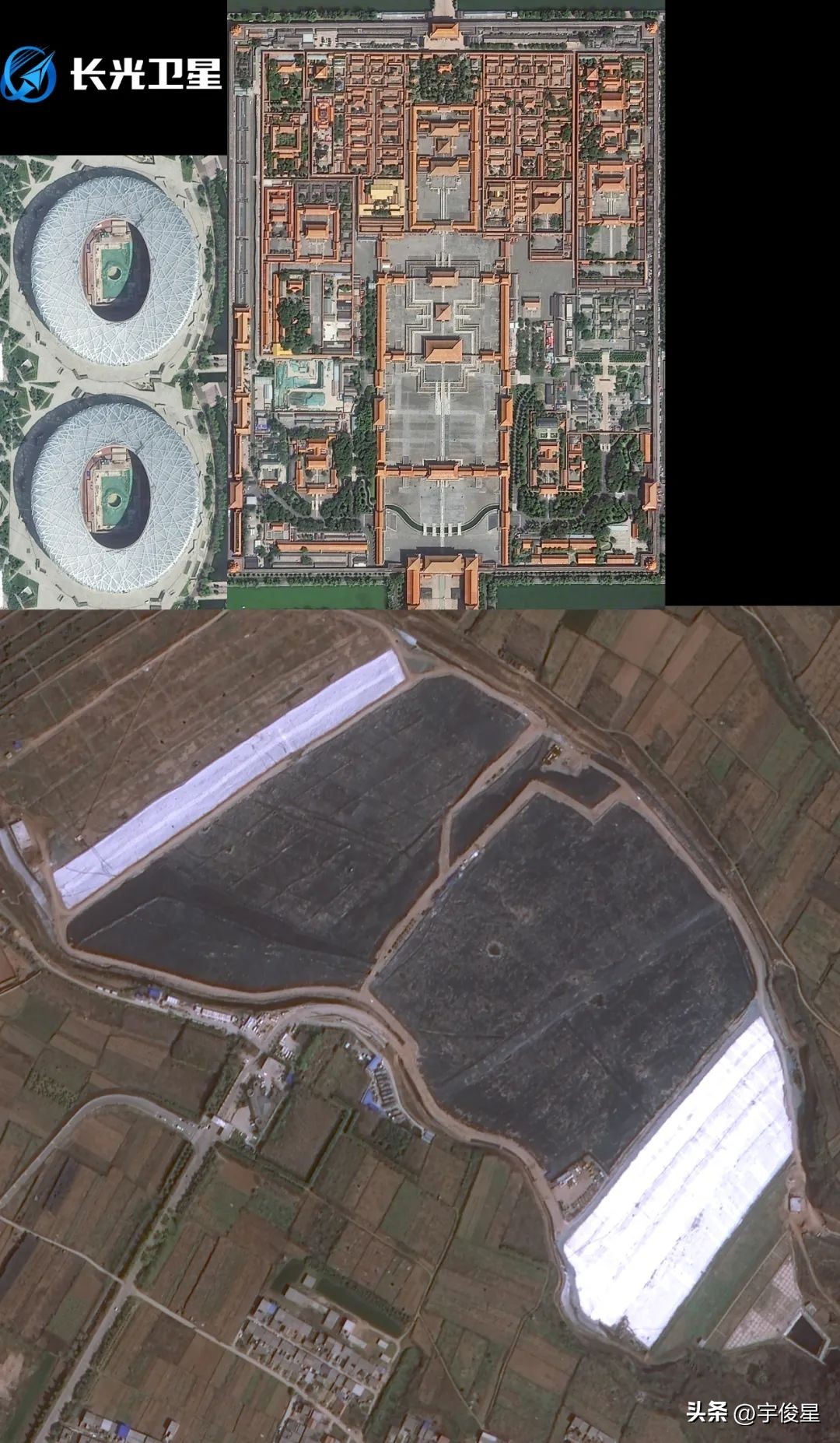 西安灞桥江村沟垃圾填埋场和故宫的面积对占比,地100个足球场,这里提前20年达到了设计容量